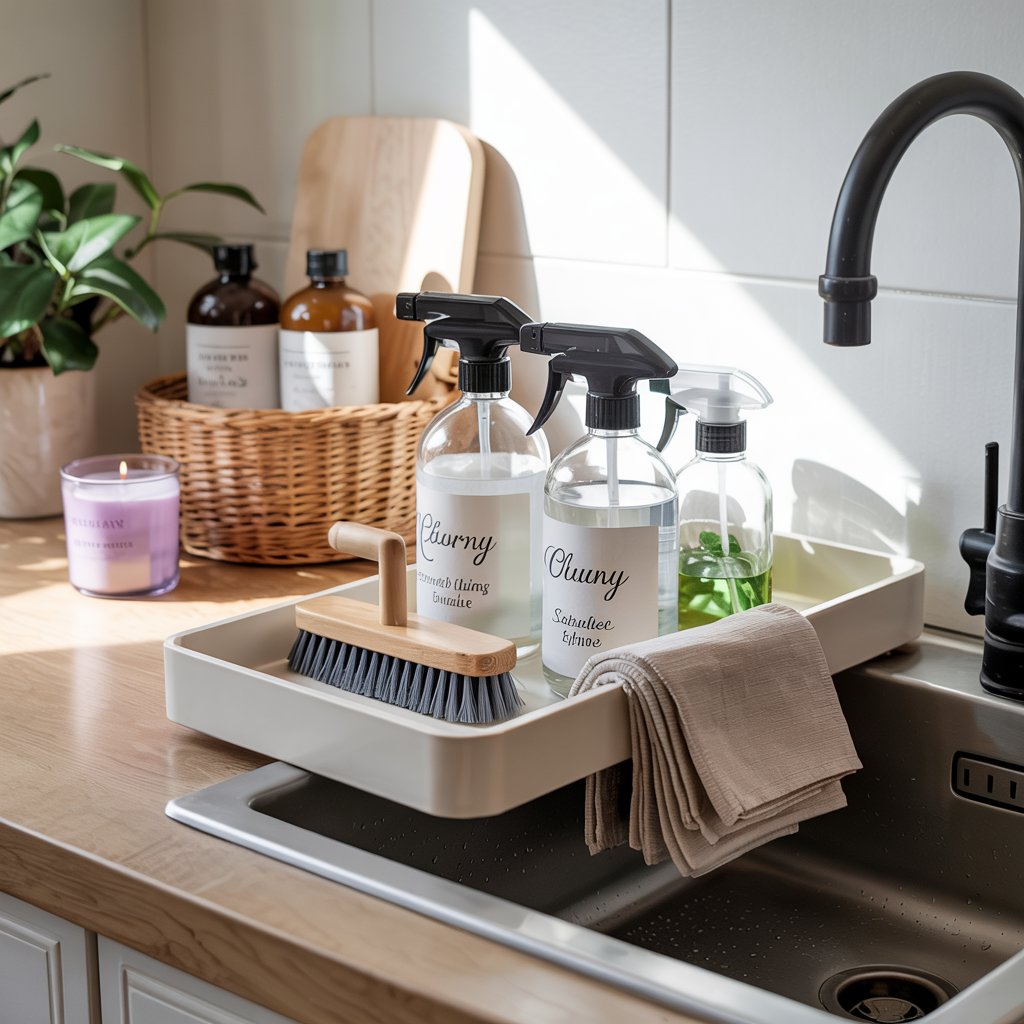 - A stylish caddy under the kitchen sink